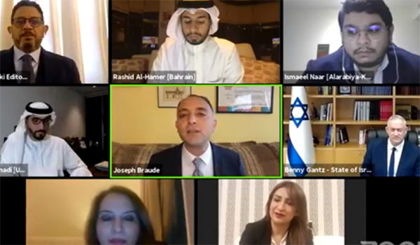 شارك محمد الحمادي رئيس جمعية الصحفيين الإماراتيين وعهدية أحمد رئيسة جمعية الصحفيين البحرينيين في اجتماع مع بيني جانتس وزير الحرب الإسرائلي عبر “الفيديوكونفرانس” نظمه ما يسمى “المجلس العربي للتكامل الإقليمي”، مساء الأحد الماضي، ويعد هذا اللقاء الثاني خلال شهر الذي يجمع نفس الصحفيين بمسؤولين صهاينة.