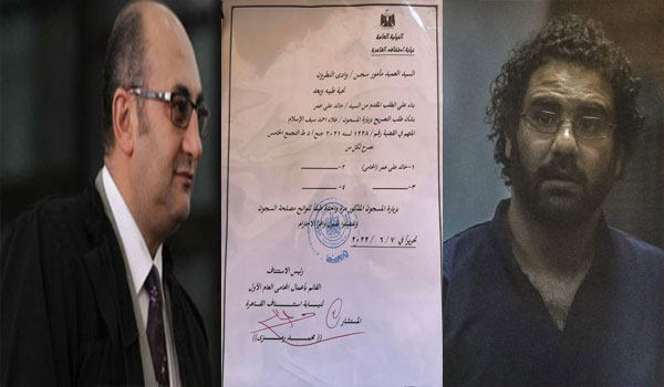 وتابع: “تقدمنا بطلب أنا والأستاذة راجية عمران والأستاذ محمد فتحى للحصول على تصريح بزيارة علاء فى السجن النيابة العامة صرحت لى فقط بزيارته ودى صورة التصريح مرفقه مع البوست”.