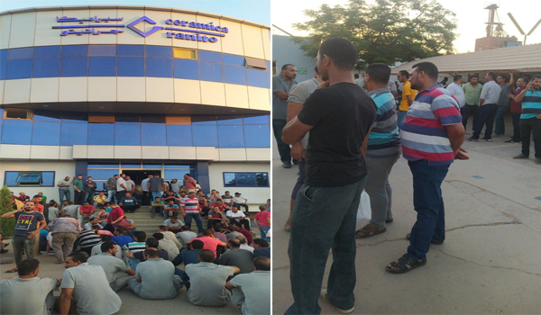 تصاعد اليوم الاثنين غضب عمال سيراميكا جرانيتو المعتصمون منذ 5 أيام بعد تهديد إدارة الشركة للعمال بإغلاق المصنع إذا لم يفضوا اعتصامهم وتشريد كل العمال.