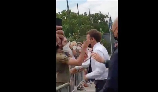 أظهر مقطع فيديو صفع مواطن فرنسي للرئيس الفرنسي إيمانويل ماكرون على وجهه اليوم الثلاثاء وسط حشد من المتفرجين أثناء جولته في جنوب فرنسا.