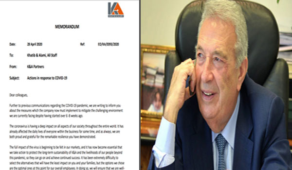 وبحسب عاملون في «خطيب وعلمي» فضلوا عدم ذكر اسمهم، أرسلت الشركة بريدا إلكترونيا إلى العاملين لديها بتخفيض الرواتب بسبب أزمة فيروس كورونا المستجد. واطلع موقع «درب» على نص الرسالة، التي أكدت أن القرار سيبدأ تطبيقه من فترة دفع المرتبات في مايو وحتى نهاية يوليو،مع إشارة إلى أن القرار «يمكن تمديده».