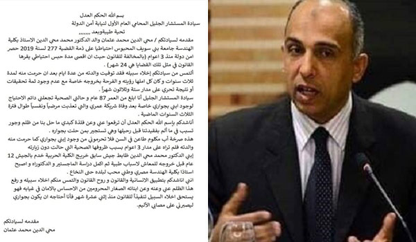 والد د.محمد محيي الدين يتقدم بطلب لنيابة أمن الدولة لاخلاء سبيله : أناشدكم أن ترفعوا عني وعن فلذة كبدي ماحل بنا من ظلم
