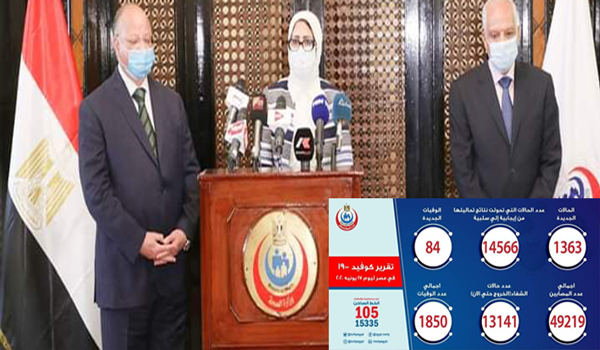 وزيرة الصحة: تسجيل 1363 إصابة جديدة بفيروس كورونا ووفاة 84 حالة.. واجتماع تنسيقي يومي مع 8 محافظات الأكثر إصابة